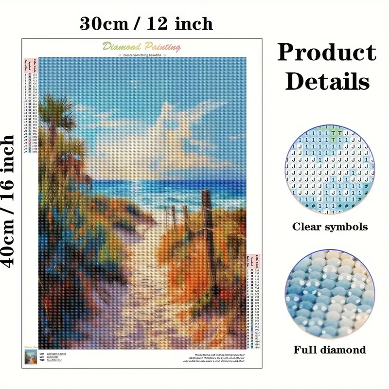 All the diamond embroidery we sell comes with: High-quality base (with glue) where you mount the diamonds, acrylic diamonds, base for storing the diamonds, installation pen, wax for the installation pen